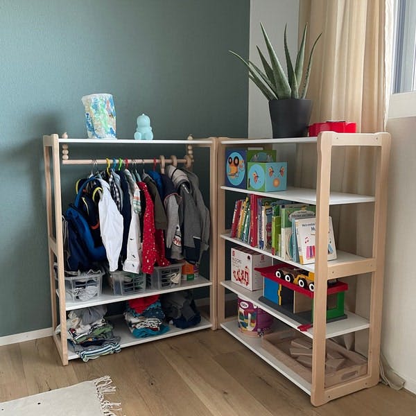 Montessori Kids Clothing Rack with Maxi Large Storage Shelf